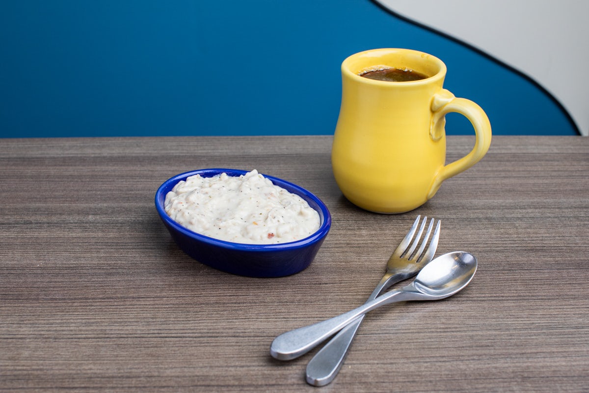 ................................US$17.25Homestyle cheesy grits loaded with sautéed shrimp, Andouille sausage, house-made savory sofrito, topped with a sunny-side up cage-free egg.