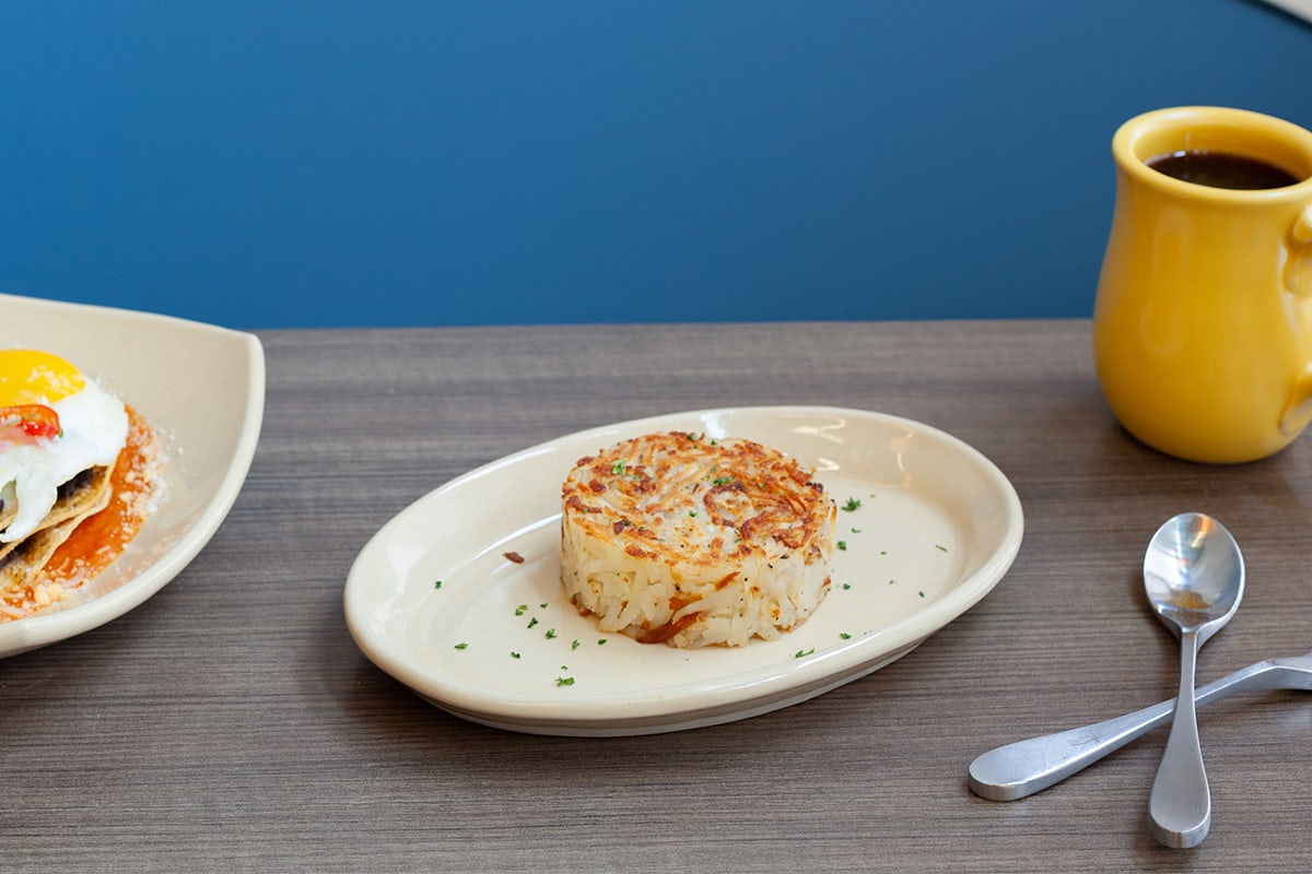 ................................US$15.25A heaping portion of hash browns, covered with melted cheddar & Jack cheese, scallions and choice of two enhancements. Topped with two cage-free eggs, any style.